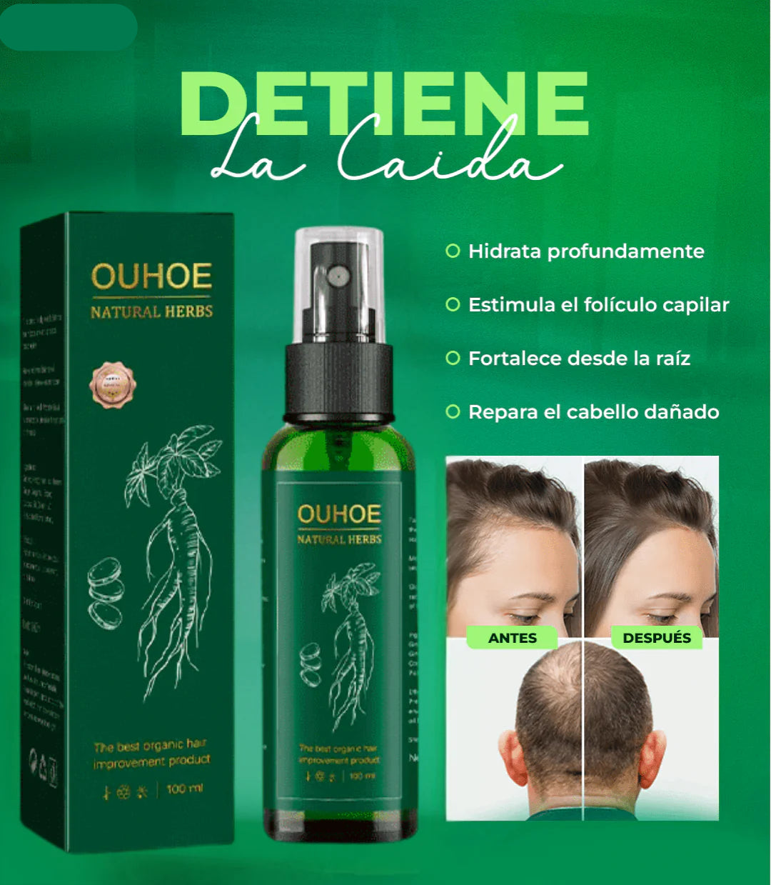 “Frena la caída del cabello y activa su crecimiento natural desde la raíz”